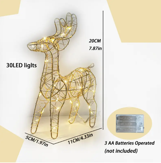 Добавете стил и празнично настроение у дома с тази елегантна LED декорация „Елен“ в Glam стил, изработена от висококачествен чугун. С 30 ярки LED светлини, фигурата създава уютна, топла коледна атмосфера и е идеален акцент за маса, рафт, прозорец или камина.